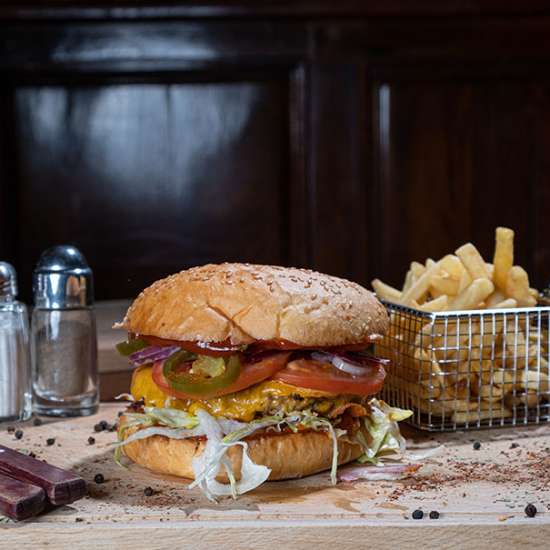Kartoncsomagolás (Carolina Reaper paprikás BBQ Burger 548g termékhez)