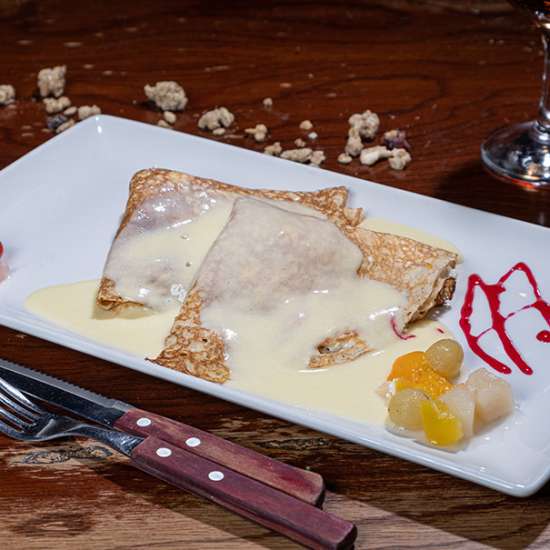 Túróval és gyümölccsel töltött palacsinta vanília öntettel 260g